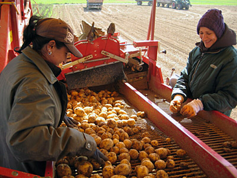Wir fördern die natürliche Fruchtbarkeit des Bodens durch vielseitige Fruchtfolgen und organische Düngung. Dadurch werden die Kartoffelpflanzen widerstandsfähiger gegen Krankheiten. Nützlinge wie der Marienkäfer und Präparate aus Naturstoffen helfen uns bei der Schädlingsbekämpfung. Das Unkraut regulieren wir mechanisch durch Hacken und Striegeln. Unser Pflanzgut stammt aus ökologischer Vermehrung vom Bioland-Betrieb Gebhardt in Gnötzheim (Thomasbauernhof) und vom Naturland Hof Reder in Kleineibstadt. Dieses standortangepasste Pflanzgut trägt ebenfalls zur Gesundheit der Pflanzen und zur Sicherheit im Anbau bei.