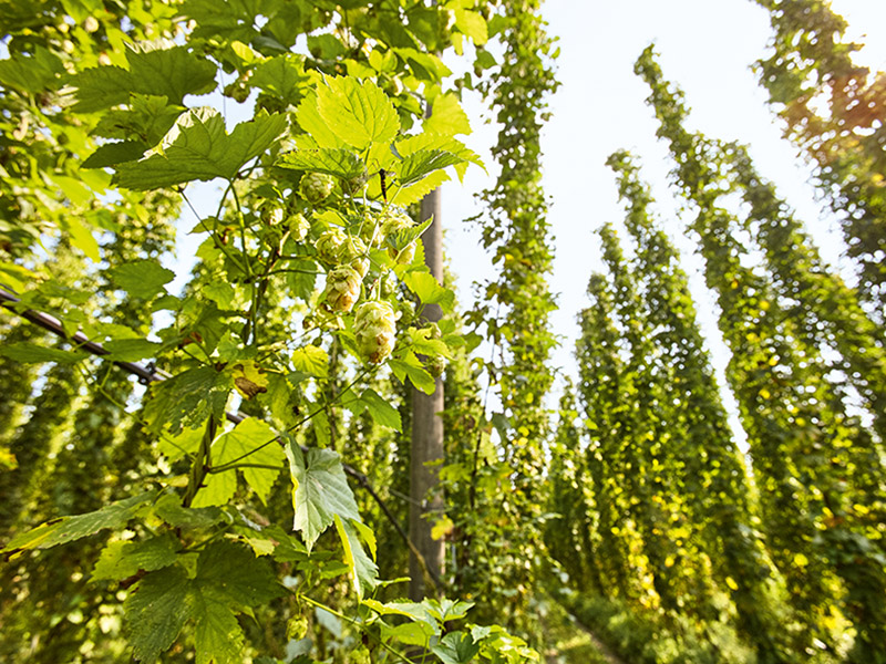 Hopfen in luftiger Höhe