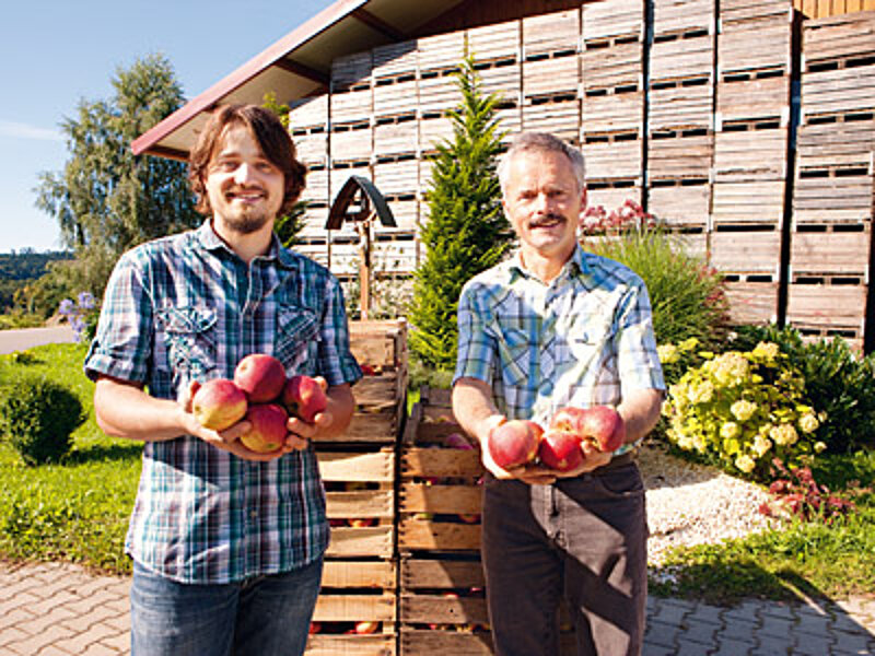 Der Junior hat von seinem Gartenbau-Studium einiges an Ideen und Neuerungen mitgebracht, würde aber nie an der Öko-Ausrichtung des Betriebes rütteln. "Ich mag mir nicht vorstellen, je chemisch-synthetische Pflanzenbehandlungsmittel zu verwenden." So bewahren Vater und Sohn einerseits das Erbe, denn der Hof ist seit jeher ein Obst- und Hopfenbetrieb, öffnen aber zugleich dem Fortschritt die Türen. Schließlich gibt es den ökologischen Obstbau erst seit Mitte der 1970er-Jahre in der Bodensee-Region. Die beiden können heute zwar auf Erfahrung und vorhandenes Wissen zugreifen, doch oft müssen sie noch selbst experimentieren und eigene Wege austesten.