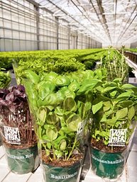 Der Bioland-Gartenbaubetrieb von Familie Pelzl baut verschiedene Gewürz- und Küchenkräuter an und vermarktet sie als Topfware. Durch den Anbau im Gewächshaus ist das Angebot ganzjährig erhältlich.