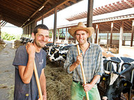 Zudem kommt Lebendigkeit aus dem Boden, der auf natürliche Weise, zum Beispiel mit Mist gedüngt wird. Der Mist stammt von den 55 Milchkühen, dem Stier und ihrem Nachwuchs sowie von der kleinen Herde Schweine. Daneben führen Leguminosen dem Erdreich auf natürliche Weise Stickstoff zu. Das sind Kreuzblütler wie die Luzerne, in deren Wurzelknöllchen Bakterien leben, die Stickstoff oxidieren. Auch Kompost spielt eine Rolle, denn die Abfälle aus dem Gemüseanbau ergeben fruchtbaren Humus. Alles in allem zählt: "Beobachten, gute Bodenbearbeitung und sich möglichst wenige Fehler leisten."