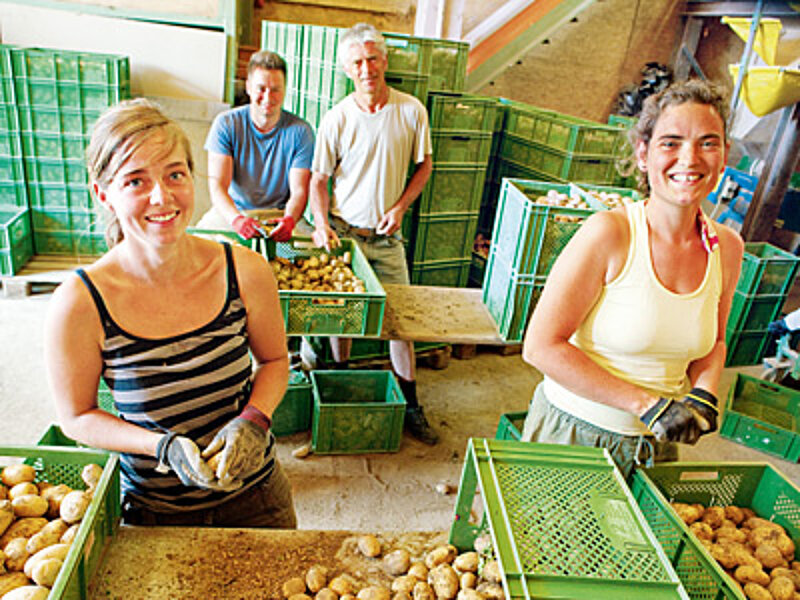 Wer sich das alles einmal ansehen möchte, dem bieten die Höllwanger Hofführungen an. Außerdem sind sie Mitglied im Arbeitskreis "Lernort Bauernhof" und führen viele Projekte für Schulklassen rund um Hof und Landwirtschaft durch. Zum Beispiel für die Kaspar Hauser Schule in Überlingen: Die Kinder der 3. Klasse arbeiten vormittags mit. Da lernen sie, wann und wie Kartoffeln blühen, wie die Knollen in den Boden kommen, was bei der Ernte passiert und vieles mehr.