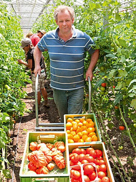 Was sich nach bunten Cocktails anhört, sind die Namen alter Fleischtomatensorten aus Omas Garten. Besser bekannt als Ochsenherztomaten. „Am Anfang war es schon ein Risiko, die alten Sorten anzubauen und zu kultivieren,“ erläutert Birger Richter. Das Risiko hat sich gelohnt - die leuchtend gelben, pinken oder auch dunklen Tomaten sind besonders durch ihre Optik und ihren milden, vollmundigen Geschmack sehr beliebt.