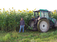 Auf einem Großteil der Flächen bauen wir zwischen Ernte und Aussaat der Gemüsekulturen sogenannte Zwischenfrüchte an, zum Beispiel Sonnenblumen. Ihr Anbau dient der Regeneration des Bodens, denn der Anbau unterschiedlicher Pflanzen auf derselben Fläche führt zu einem differenzierten Auf- und Abbau der im Boden enthaltenen Nähr- und Mineralstoffe. Dadurch bleiben diese langfristig erhalten. Durch den Anbau von Hülsenfrüchten (Leguminosen) als Zwischenfrucht wird dem Boden auf natürliche Weise Stickstoff zugeführt, den diese Pflanzen aus der Luft binden können. Wir beziehen außerdem Mist zur Düngung unserer Flächen von einem Nachbarbetrieb, der ebenfalls ökologisch wirtschaftet.