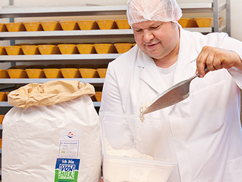 Die Zutaten für das VonHier-Sortiment kommen aus ökologischer Erzeugung. Das heißt, alle Lieferanten, vom Getreidebauern bis zur Mühle, die die Mehle mahlt, erfüllen die EU-Öko-Kriterien. Mehr noch: Sie arbeiten nach den wesentlich strengeren Vorgaben von Öko-Verbänden wie Bioland und Naturland. Das bedeutet zum Beispiel, dass die Bauern ihr Getreide ohne chemisch-synthetische Spritz- und Düngemittel anbauen, und dass die Müller ihr Mehl nicht mit chemisch-synthetischen Substanzen behandeln.