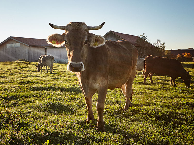 Hannah Inning betreibt im Ostallgäu Mutterkuhhaltung nach ökologischen Richtlinien und nimmt mit den Jungrindern am VonHier-Programm der Feneberg Lebensmittel GmbH teil.