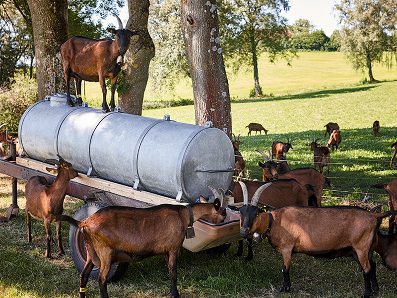 Gefüttert wird ausschließlich Heu und Gras. Nur als Lockfutter im Melkstand gibt es Getreide. Gemolken wird wie bei den Kühen zwei Mal täglich. Ein Vorteil der Ziegenhaltung: Ziegen sind weniger empfindlich am Euter als Kühe. „Man braucht sehr selten einen Tierarzt“, erklärt Johannes Egger. Auch Klauenprobleme gebe es kaum, allein schon wegen des geringeren Gewichts. Die frische Milch wird gleich nach dem Melken in der Sennküche verarbeitet. Sie wird pasteurisiert und in Flaschen abgefüllt oder zu Frischkäse weiterverarbeitet. In einigen Jahren will der Molkereimeister auch Labkäse herstellen. Ziegenmilch gilt übrigens als gut verträglich: Aufgrund ihrer Zusammensetzung kann sie häufig auch von Menschen mit Laktose-Unverträglichkeit problemlos getrunken werden. Geschmacklich unterscheidet sie sich frisch gemolken kaum von Kuhmilch.