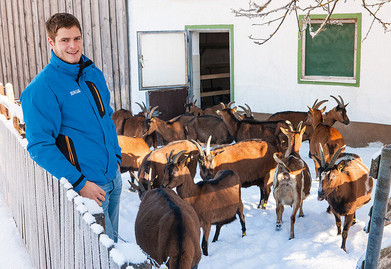 Johannes Egger erzeugt auf seinem Betrieb Bio-Ziegenmilch, die die Feneberg Lebensmittel GmbH in ihren Märkten unter dem Dach der regionalen Bio-Marke VonHier vertreibt.