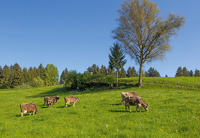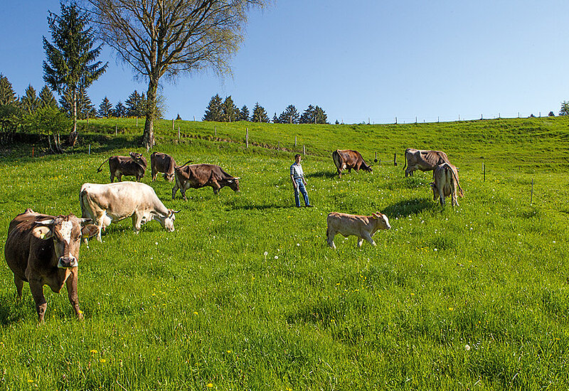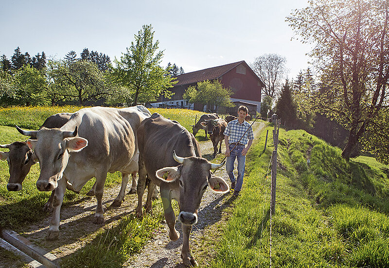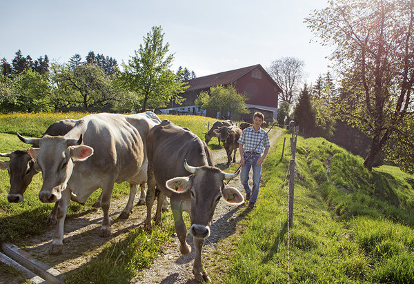 Familie Hauber liefert frische Bio-Heumilch an die Molkerei Zurwies. Die Milch wird über das VonHier-Programm von Feneberg vermarktet.