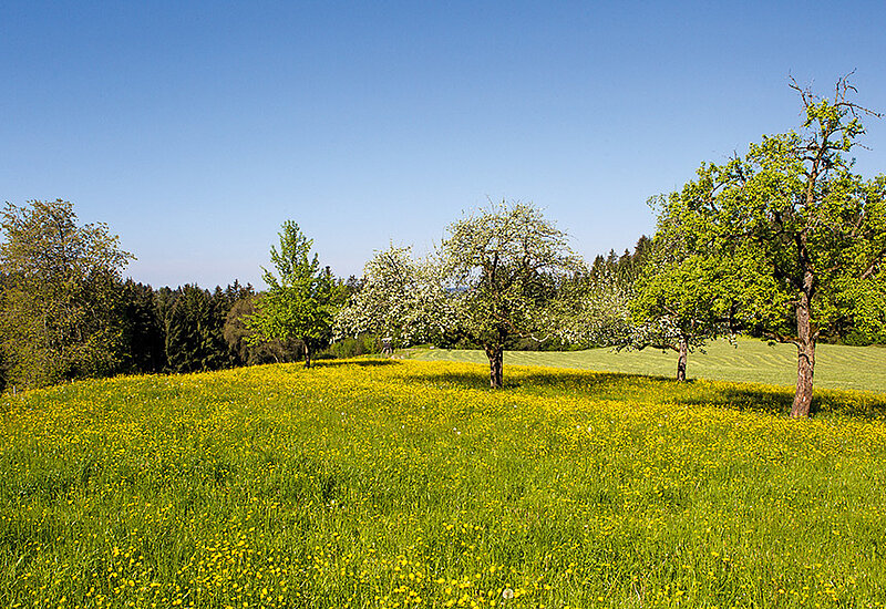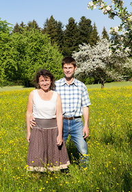 Auf Bio umgestellt haben die Haubers 2008. „Wir waren wahrscheinlich schon immer Bio“, sagt die Bäuerin. „Nur die Bürokratie war lange Zeit die Hemmschwelle, uns zertifizieren zu lassen.“ Ihr Großvater hat den Hof 1934 gekauft. Damals hat er auch die Obstbäume gepflanzt, die heute die schöne Streuobstwiese bilden. Es sind alte Sorten, Äpfel und Birnen. Aus einem Teil brennen die Haubers Schnaps. Streue und Heu für das Vieh wird auf dem Betrieb produziert. „Wir waren schon immer ein Heumilchbetrieb“, erklärt Simone Hauber. Ein wenig Streu müsse meist zugekauft werden, ansonsten wird alles, was die Tiere brauchen, selbst hergestellt. Gedüngt wird mit Gülle und Mist. Ist ein Tier krank, wird es meist homöopathisch behandelt – entweder durch die Hofherrin selbst oder durch eine Tierheilpraktikerin.